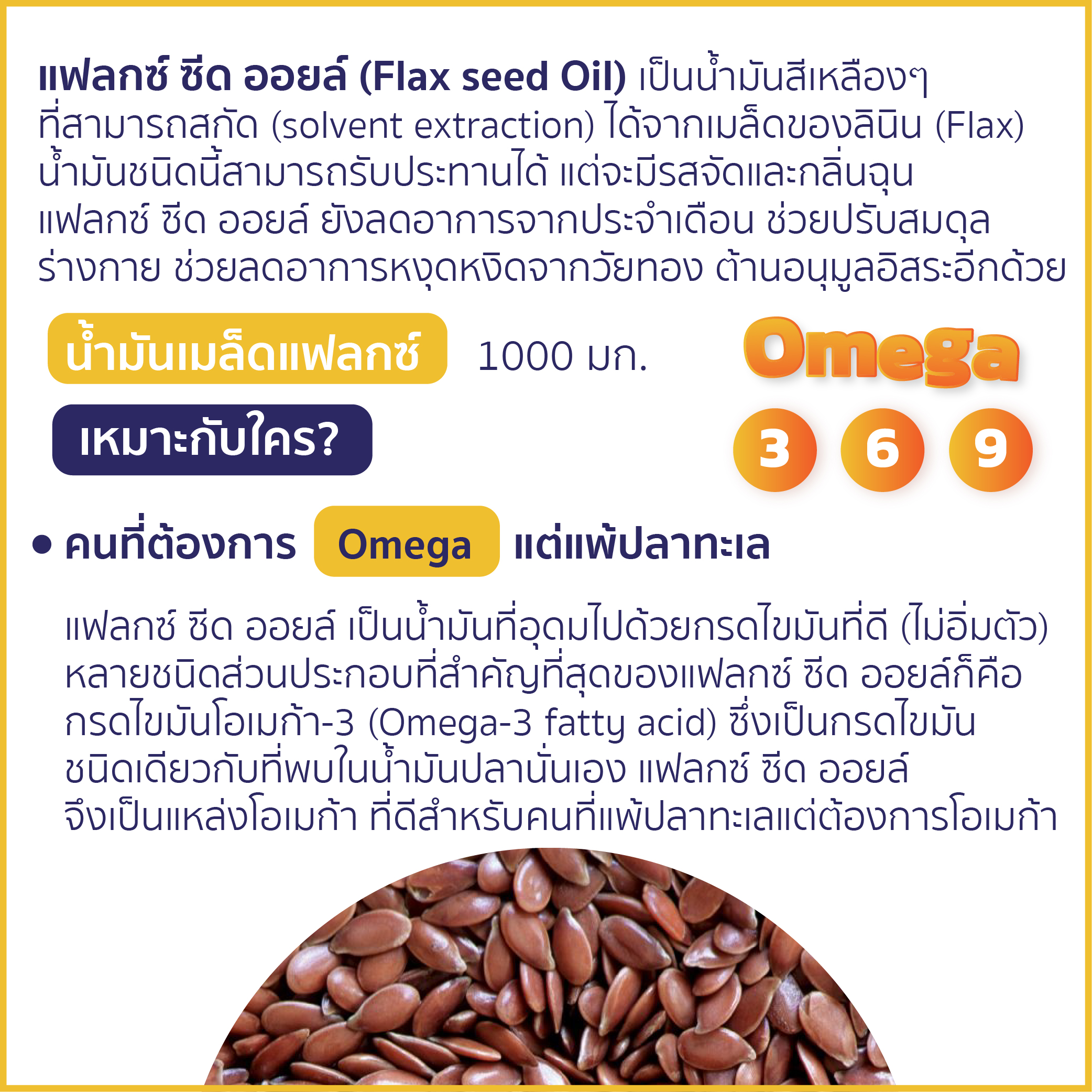 Flaxseed Oil (สารสกัดจาก เมล็ดแฟลกซ์) Omega 3 6 9 คืออะไร ??
