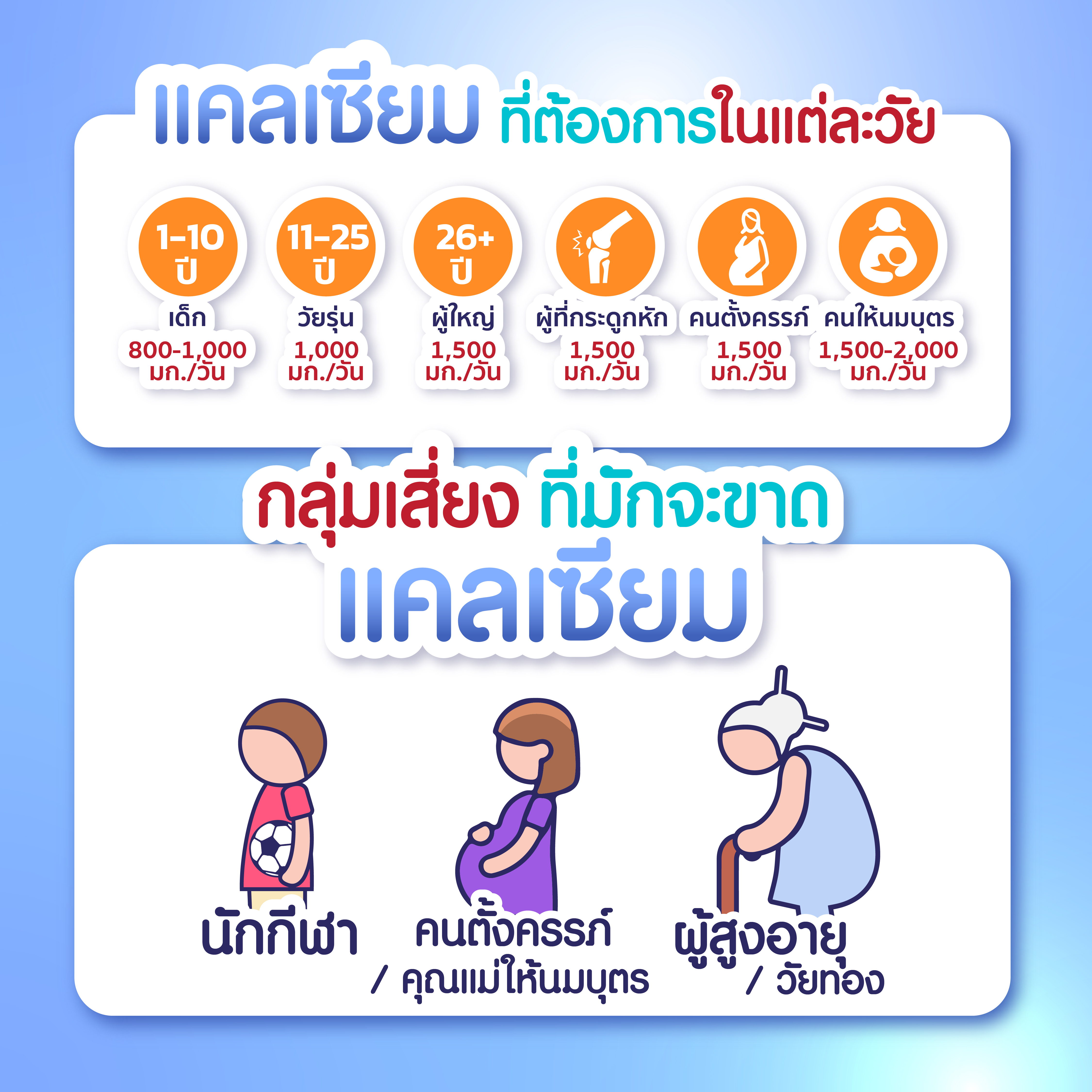 - ในวัยสูงอายุ แคลเซียมในกระดูกจะมีอัตราการสลายมากกว่าการสร้าง ก่อให้เกิดการสูญเสียกระดูกและปัญหาสุขภาพที่ตามมา เมื่อเราเข้าสู่วัยสูงอายุ การบริโภคแคลเซียมอย่างเหมาะสมเป็นสิ่งสำคัญเพื่อชดเชยความไม่สมดุลนี้